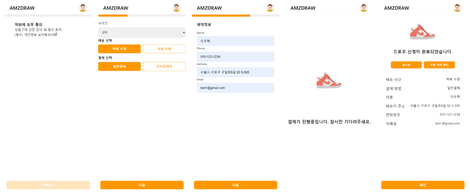 주문 로직은 3개의 페이지를 돌면서 정보를 수집해 저장하는 역할을 하고 있습니다.